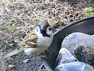 07:08 ヒヨちゃんの目を盗むようにして、スズメ君がトレイの中のエサを狙いにきました